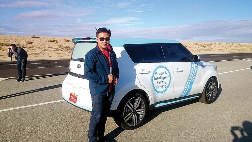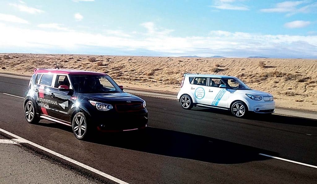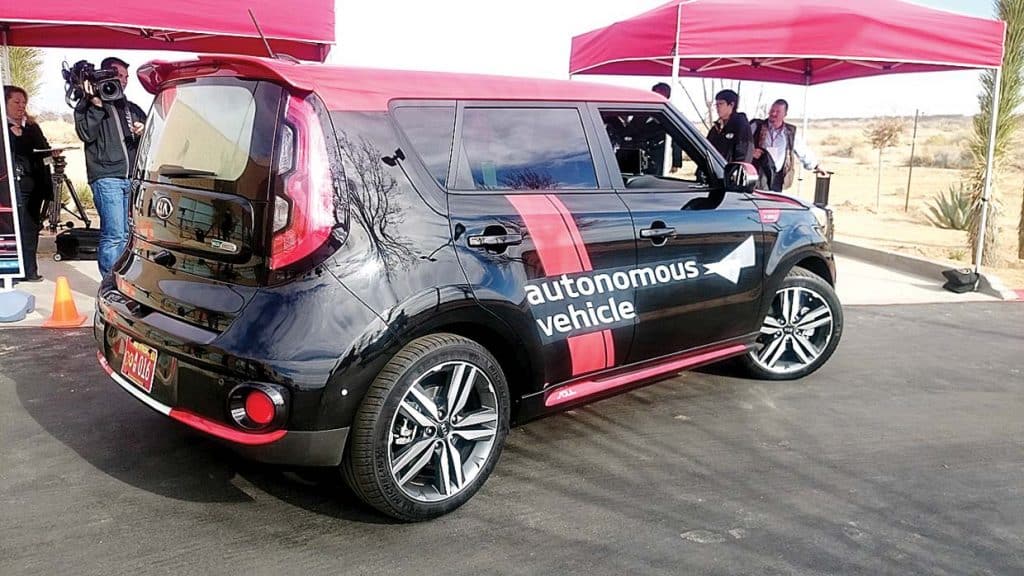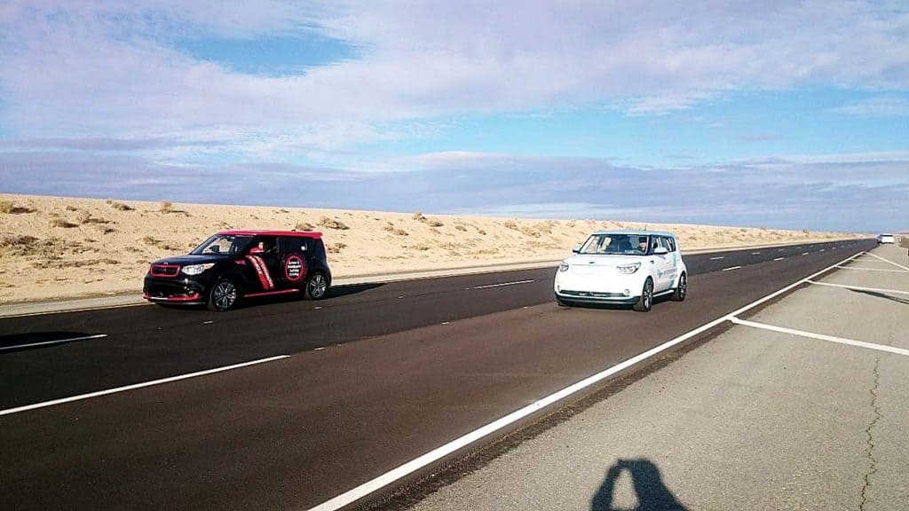 MOJAVE, California—The Kia engineer standing beside me at a parking lot sidewalk spoke to his smartwatch and said, “Pick me up.”