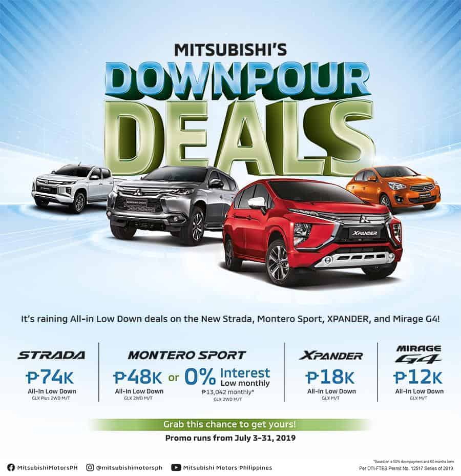 This month, Mitsubishi Motors Philippines Corporation (MMPC) serves up “irresistible” financing plans through its “Downpour Deals” promo.