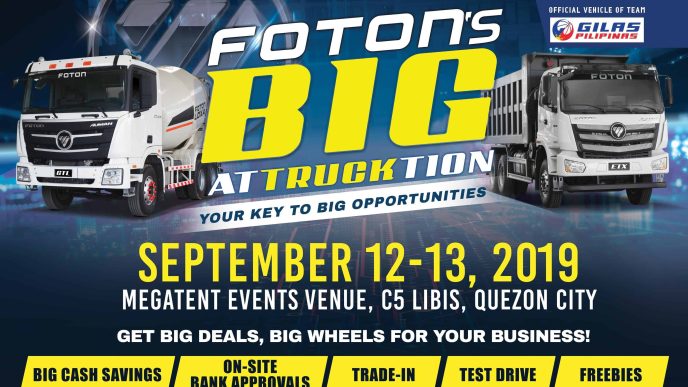 Foton ranked ninth overall on the list of top auto brands in the country last year. Sytin declared, “What we started in 2006 has since brought multi-functional workhorses, and has reached and attending to the mobility needs of local regions. We continue to find new and smarter aftersales solutions for customers. And now, we are excited to present all these, and bring bigger opportunities through the Big AtTRUCKtion.”