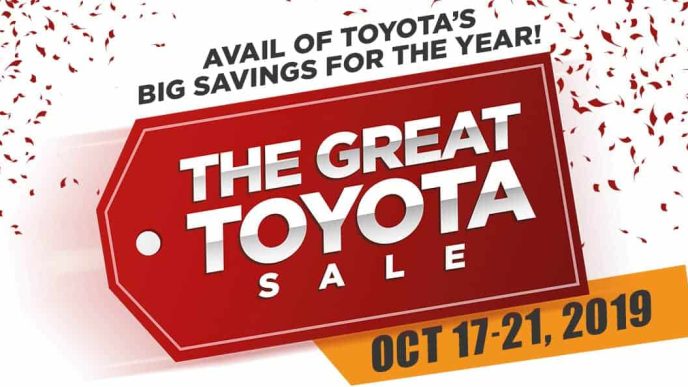 “The Great Toyota Sale offers irresistible deals for limited stocks, available only this weekend,” said TMP first vice president Cristina Arevalo. “We highly encourage everyone to come and visit their preferred Toyota dealership, and experience the joys of hassle-free car ownership.”No special requirements are needed to avail and reserve the 10 participating models, with discounts as much as P230,000. Interested customers may access this link for details and reservations: www.toyota.com.ph For updates and more information, follow the official Facebook page at http://www.fb.com/ToyotaMotorPhilippines or visit any of Toyota’s 70 dealerships nationwide.