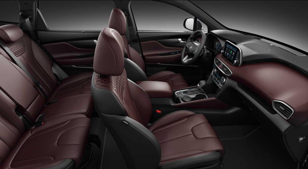 The Santa Fe is well appointed for both convenience, comfort, and safety: six SRS airbags, heads-up display, leather seats with power adjustment, seven-inch touchscreen infotainment system incorporated with both Apple CarPlay and Android Auto, wireless charger, rain-sensing wipers, two-speed power tailgate, stability control, front and rear proximity sensors, and an all-around-view camera.