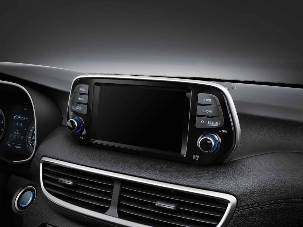 The Tucson’s infotainment system has Apple CarPlay and Android Auto, and the system’s screen can also double as monitor for the rear parking camera for easy reversing.