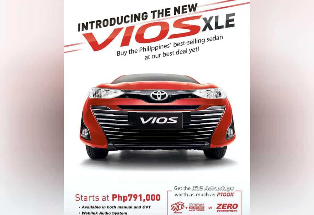 Toyota is offering the new Vios XLE with bundle offers worth as much as P100,000, as well as more vehicle customization and payment options.