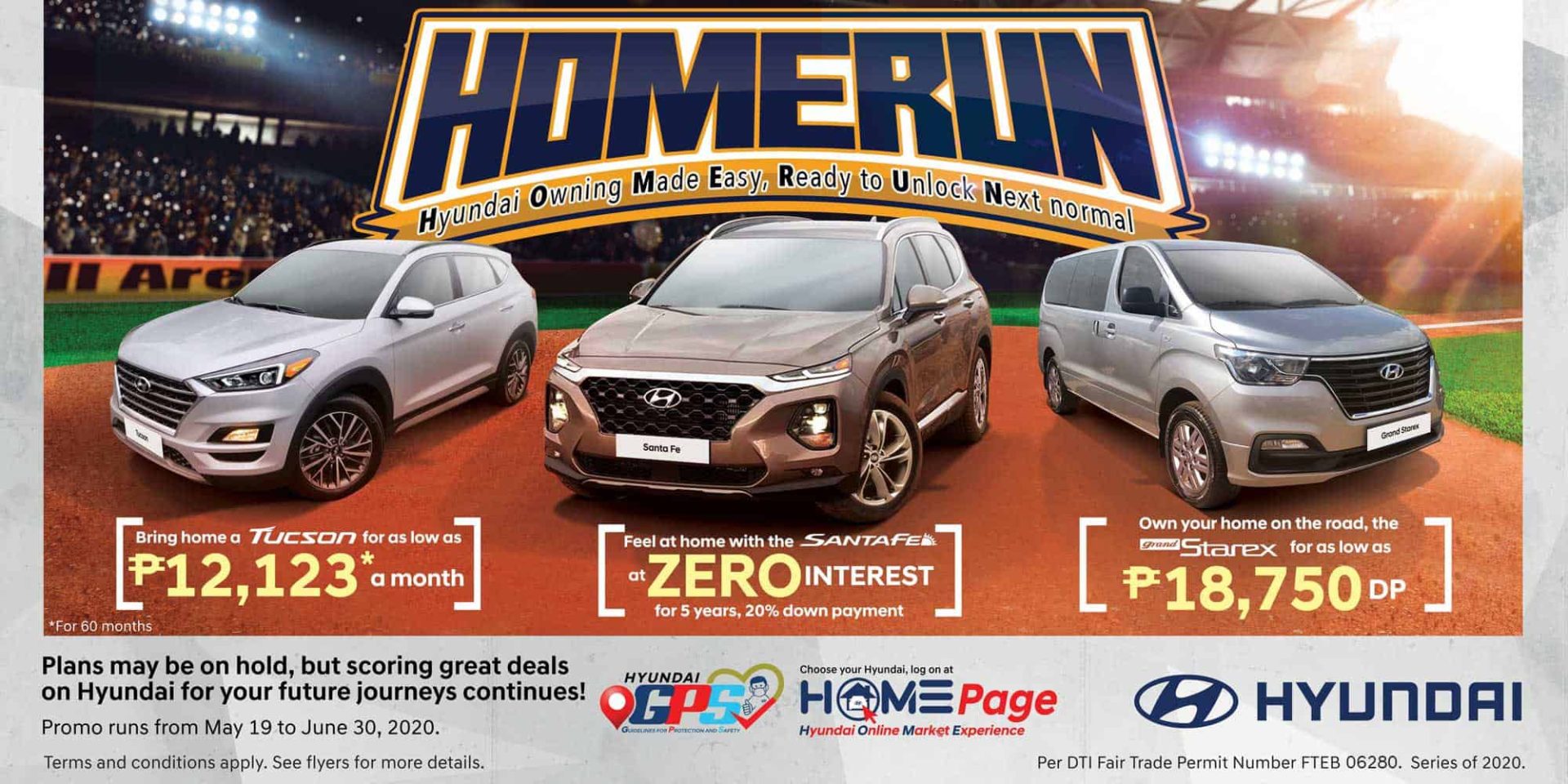 The HOMERUN Sales Promo is made possible by HARI in partnership with BDO, BPI Family Savings Bank, and RCBC. Promo runs from May 19 to June 30, 2020 per DTI Fair Trade Permit No. FTEB 06280 series of 2020. See flyers or visit hyundai.ph for details.
