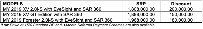 Subaru also offers customers a hassle-free buying experience through Subaru SPEED. It’s Subaru’s Shopping Platform from Electronic Enquiry up to Delivery. Simply put, customers can own a Subaru right at home without physically stepping into the showroom. Once they register their interest to purchase and select their preferred dealership, a sales consultant will be readily available online to help with product inquiries, financing applications and approval until home delivery. This is Subaru’s end-to-end commitment so that customers get to enjoy total safety!