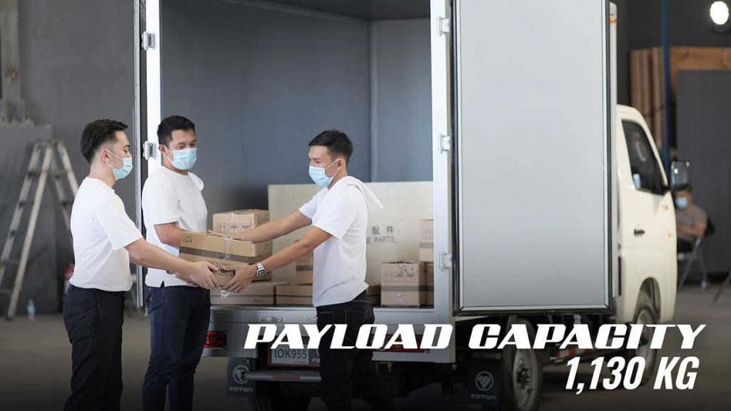 The FOTON Gratour TM 300’s high-strength truck frame is bolstered by a high-strength steel plate chassis and equipped with a generously sized cargo container with a rated payload capacity of 1,130 kgs, enabling different items to be transported with no worries.