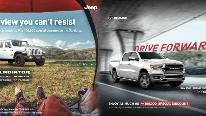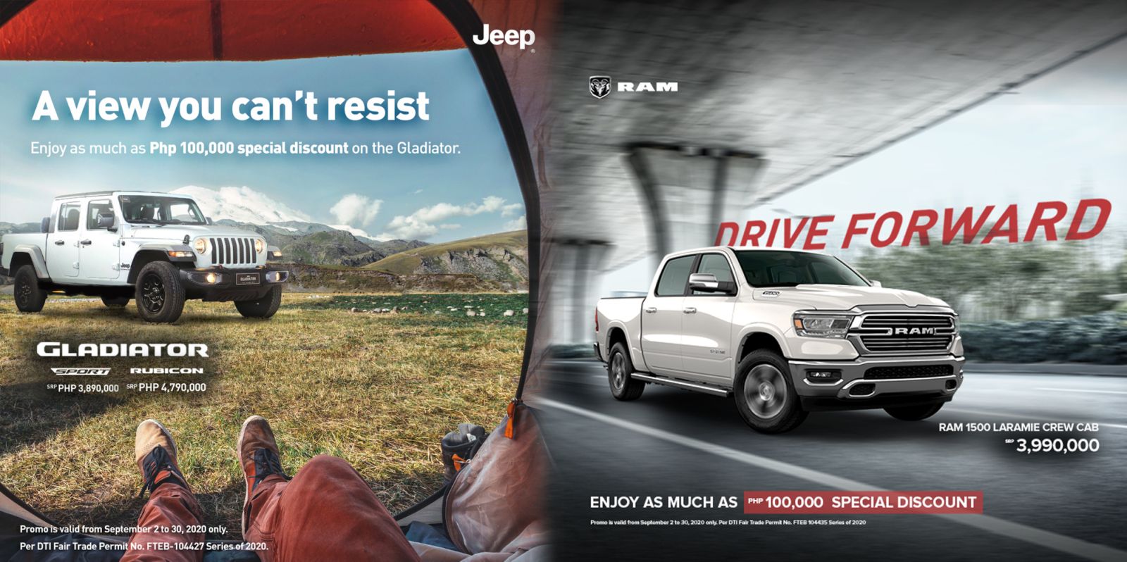 And it doesn’t stop there. If you’ve been eyeing pick-ups, we’ve also got you covered. Whether you’re onto mid-sized pick-ups like the Jeep Gladiator or a full sized one like the Ram 1500 Laramie Crew Cab, conquer the road with any of these pick-ups at Php100,000 off! You’re definitely battle ready.