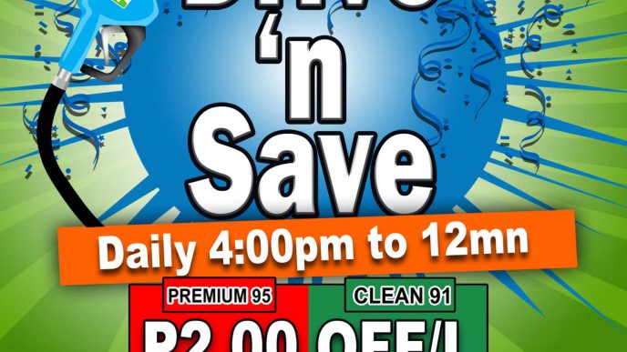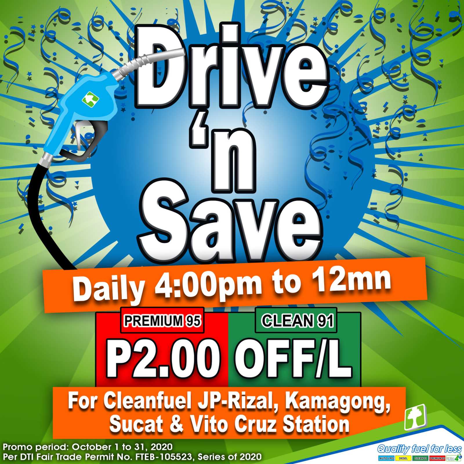 The “Drive ‘n Save” fuel discount, which was launched last year, offers motorists an opportunity to get an outright P2.00 OFF per liter on gasoline products of Cleanfuel—Premium 95 and Clean91—at Cleanfuel J.P. Rizal, Cleanfuel Kamagong, Cleanfuel Sucat, and Cleanfuel Vito Cruz.