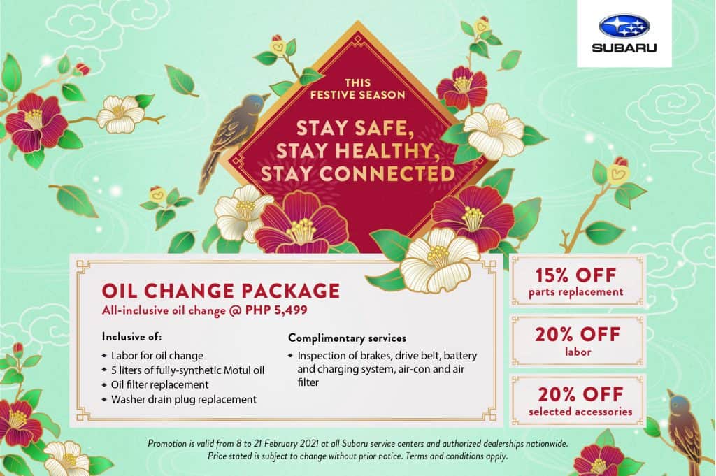 Subaru PH is also introducing the special Aftersales Lunar New Year Promo at all outlets – with Oil Change Packages, Parts Replacement, Labor, and Accessories offers. Setting an appointment in advance (via https://www.subaru.asia/ph/en/owners/subaru-service.php) is recommended to ensure your safety and convenience. The aftersales promo is slated for a two- week run from February 8 to 21, 2021.