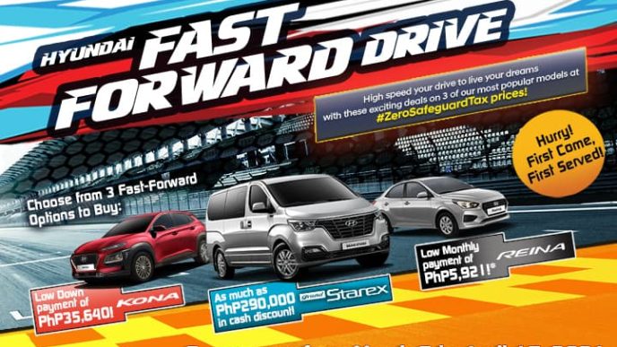 This summer, high speed your moves to achieve your business targets and personal goals with the Hyundai FAST-FORWARD DRIVE promo on three of its most popular models – REINA, KONA and GRAND STAREX!   Take advantage of 3 amazing options to buy – from cash discounts, low down payment, and low monthly payment schemes – on these featured cars from March 5, 2021 to April 15, 2021, all at #ZeroSafeguardTax prices.