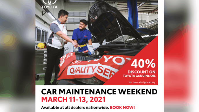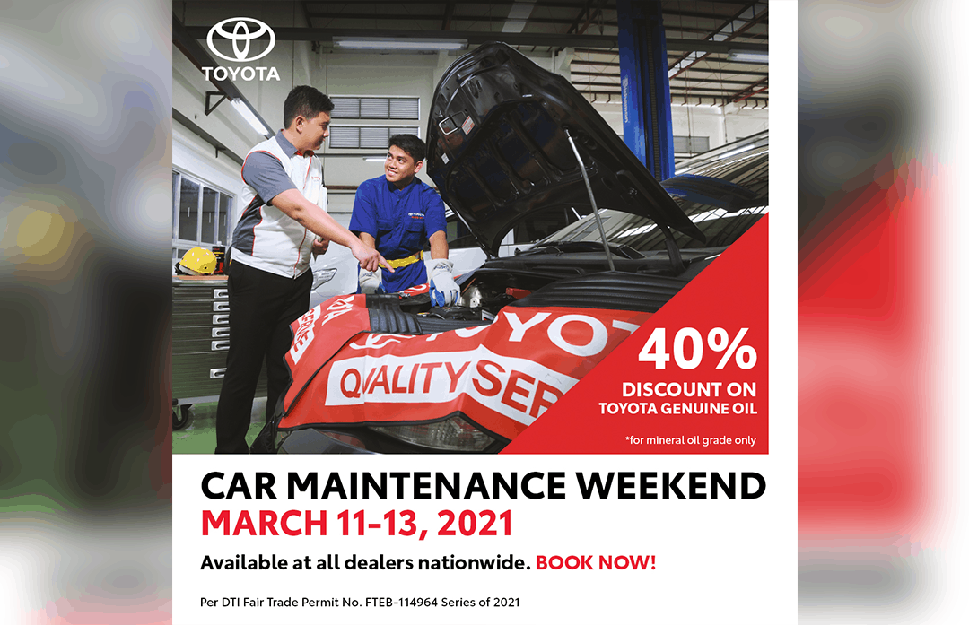 Toyota owners are in for an early summer treat this March 11 to March 13, 2021 as Toyota Motor Philippines (TMP) announces its Car Maintenance Weekend in all Toyota dealers and service centers nationwide.