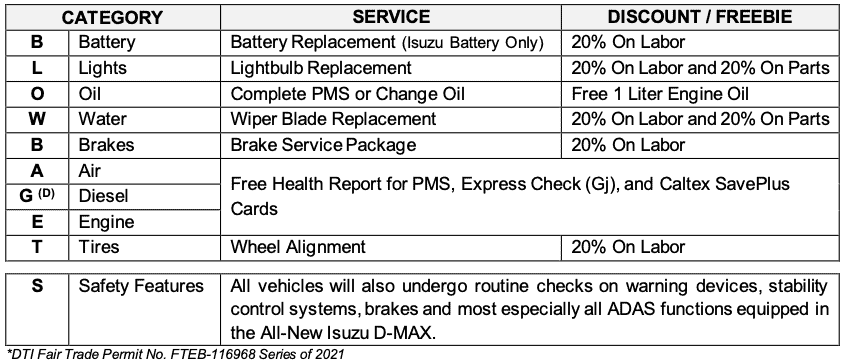 Customers are encouraged to book service appointments in advance by calling or visiting https://www.isuzuphil.com/dealers. More information about the promo mechanics can also be found at this link.