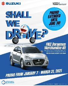 In addition to the 3 promotions Suzuki is extending, the Shall We Drive Doraemon promo continues up until the 30th of June, as announced last month. Fans of the popular Japanese manga and anime series, who avail of any variant of the Suzuki Dzire, get to take home an exclusive Doraemon merchandise kit for free!