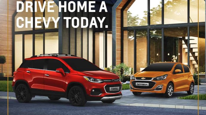 The “Drive Home A Chevy” Promo Offer represents 25% or 35% all-in low down payment based on the SRP of the vehicle models. The all-in low down payment offer is net of the promo financing discount, which covers fees for the comprehensive insurance, 3-year LTO registration, and Chattel mortgage fees.
