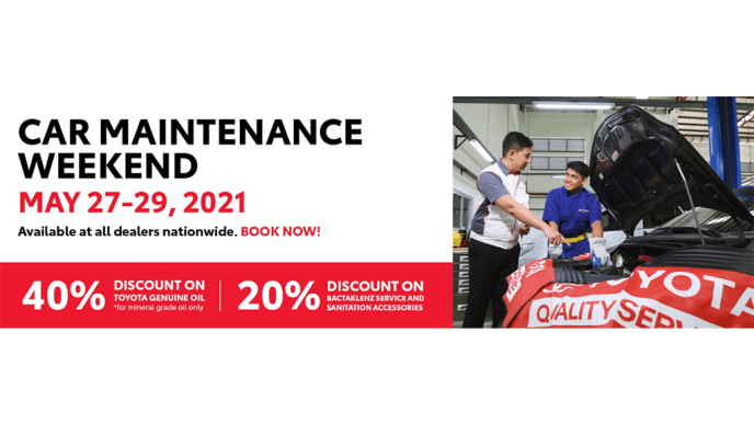 Toyota owners are in for a treat this May 27 to 29, 2021 as Toyota Motor Philippines (TMP) announces its Car Maintenance Weekend in all Toyota dealers and service centers nationwide.
