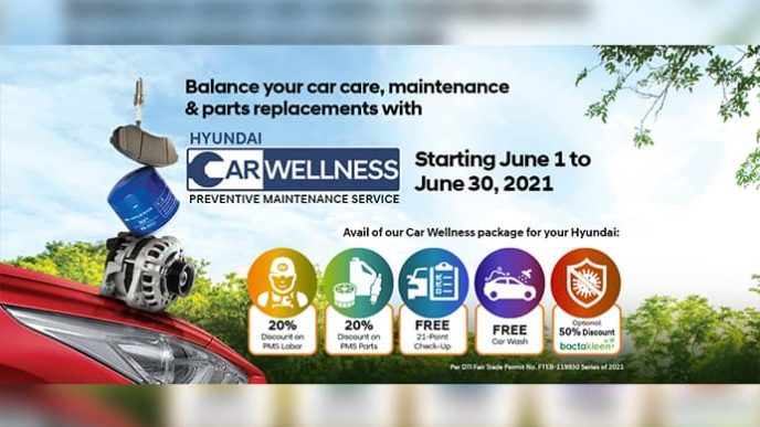 The Hyundai Car Wellness Promo runs from June 1 to 30, 2021. Per DTI Fair Trade Permit Number FTEB-119930 Series of 2021.