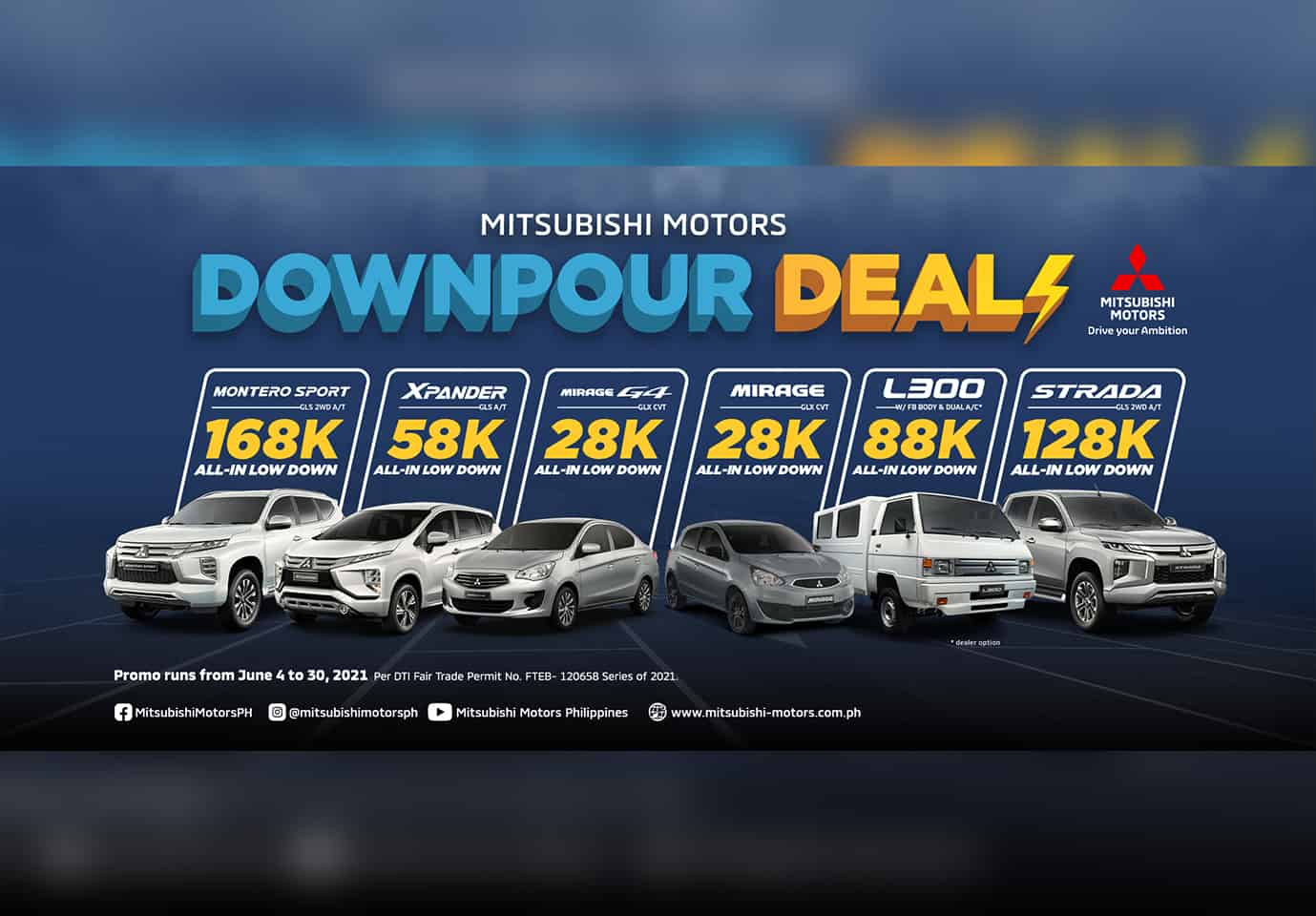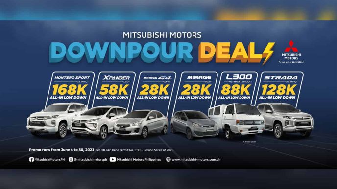 In line with the rainy season, Mitsubishi Motors Philippine Corporation (MMPC) delivers an outpour of amazing easy payment plans via the Mitsubishi Downpour Deals promo. Low down payment plans are offered to the various models of the Mitsubishi Motors product line-up.