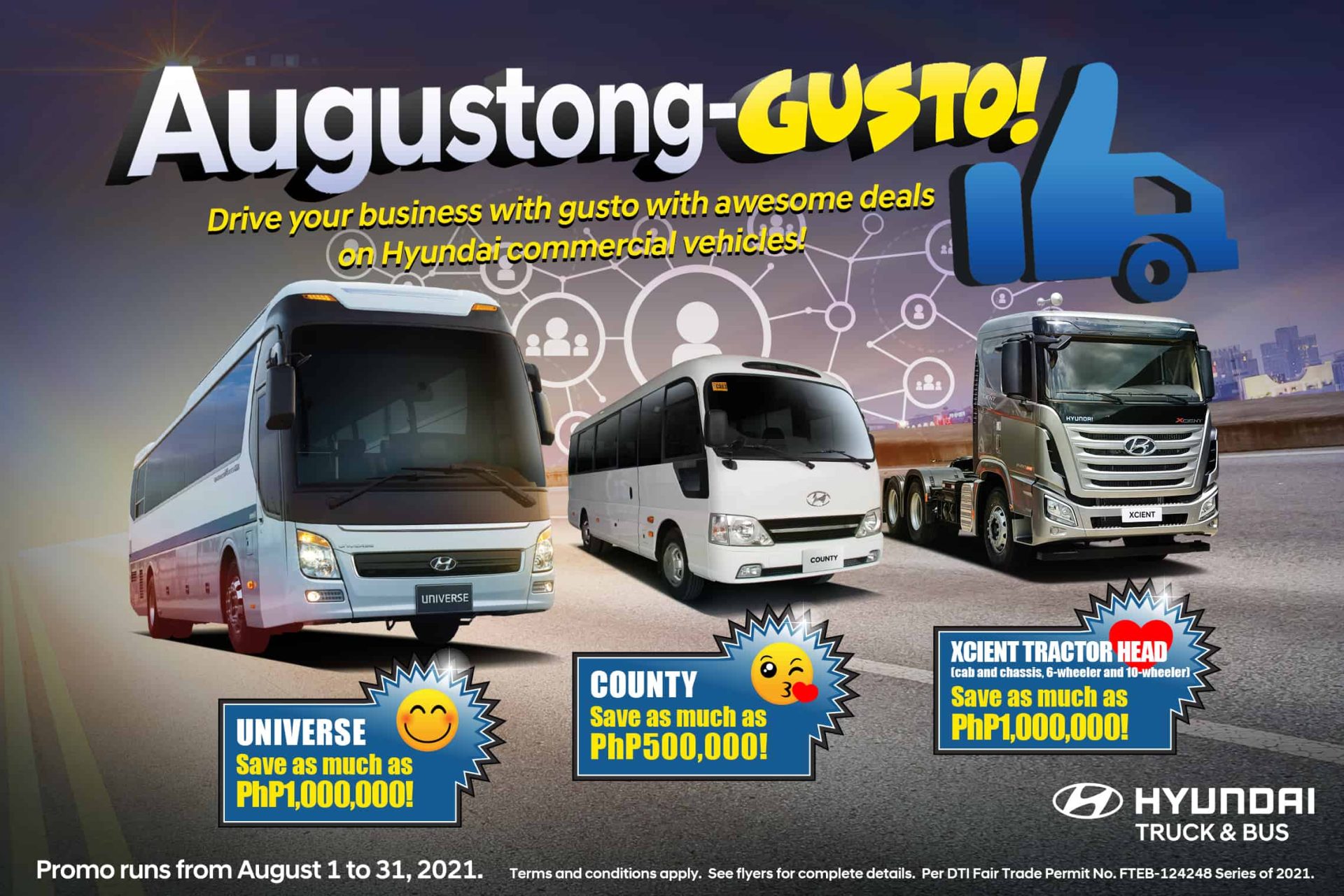 Hyundai’s Augustong-Gusto deals run from August 1 to 31, 2021.  Check out flyers for details.