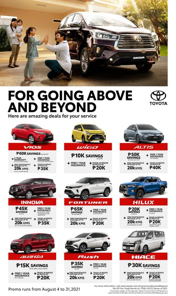 To learn more about the rewards of going above and beyond, check out toyota.com.ph/promos/aboveandbeyond. For more information on any Toyota model, our vehicles can be viewed at toyota.com.ph/showroom.