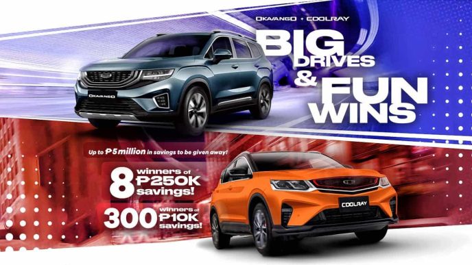 SGAP has launched a new test drive program dubbed as Coolray and Okavango Big Drives and Fun Wins, wherein it will raffle off as much as ₱5 million worth of savings to lucky winners. For every completed Geely Coolray or Okavango test drive, a customer will be eligible for one (1) raffle entry and will get a chance to win the grand prize of ₱250,000 rebate voucher for the purchase of Coolray or Okavango. Buyers of these Geely vehicles may book a test drive and e-register through Geely Philippines’ website: geelyph.com.