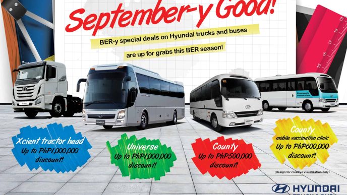 Re-fleet or expand your existing fleet with now more affordable Hyundai trucks and buses that are built to efficiently move goods, make for comfortable transport, and are easy to maintain.  As HARI President and CEO Ma. Fe Perez-Agudo affirmed, “The customers have spoken. At dahil gusto n’yo pa, September-y Good builds on the overwhelmingly favorable response to our Augustong-Gusto promo. We extend our commitment to make investing in a Hyundai truck or bus easier and more economical for entrepreneurs in these challenging times,” said Ms. Agudo.