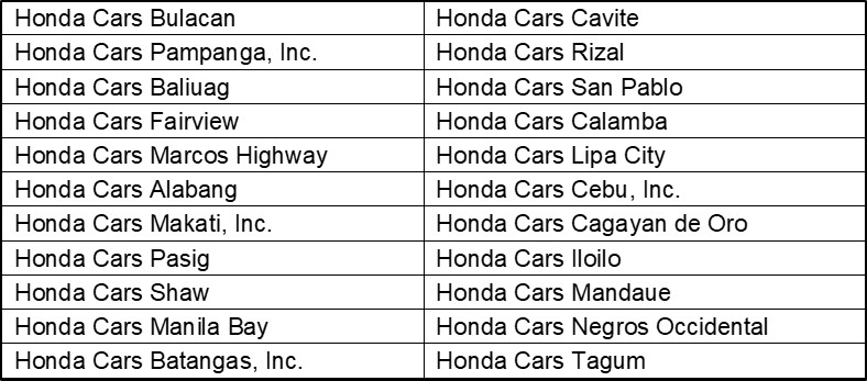 Visit www.hondaphil.com Virtual Showroom After Sales or inquire now with participating Honda Dealers nationwide.