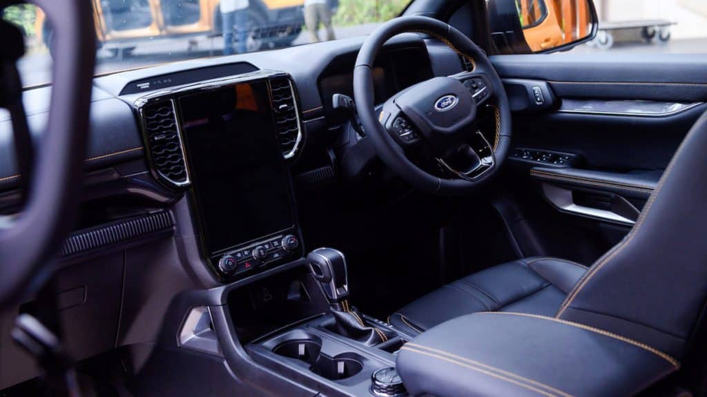 As the latest version of the midsize truck, the Ranger foregoes analog controls and displays in favor of a fully digital instrument cluster and a massive 12-inch infotainment vertical screen with SYNC4 in the Wildtrak guise. The displays are quite legible and the contrast of colors makes the texts pop out, while the capacitive feature of the center screen allows for a quite responsive interaction.