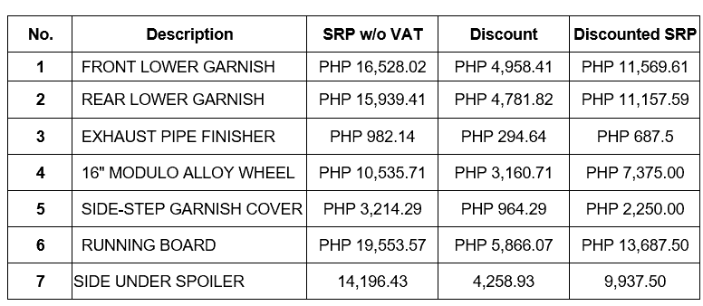 - Up to 30% off on select BR-V accessories.
