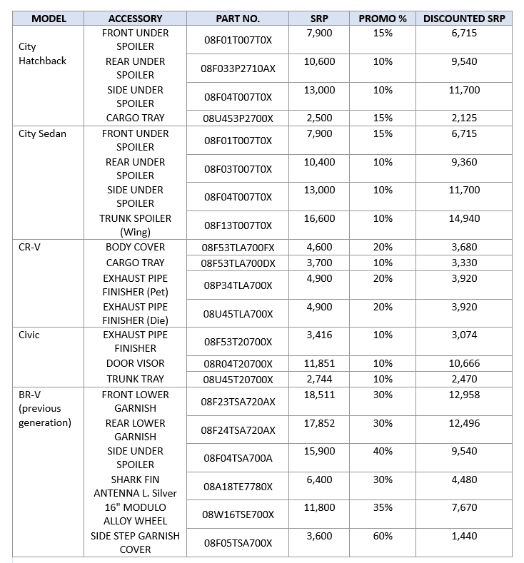 Customers may avail up to 60% discount on select Honda Genuine Accessories until January 31, 2023.