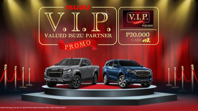 On top of that, all existing Isuzu customers who will purchase an Isuzu D-MAX or Isuzu mu-X from the same period, can avail of its new Valued Isuzu Partner (VIP) Promo and get an additional P20,000 cash discount on top of any existing promo or P25,000 worth of Isuzu VIP Coupon which can be used to purchase parts & accessories at any Isuzu dealerships nationwide.
