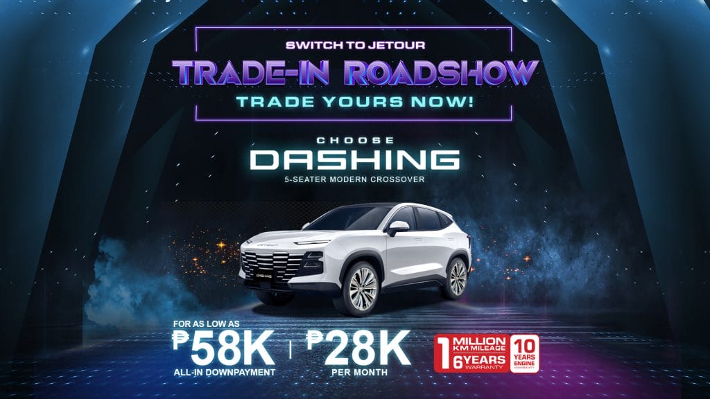 Starting this November, the JETOUR Trade-In Road Show will be making its rounds at select JETOUR Auto dealerships in Metro Manila. The latest promotional activity from JETOUR lets car owners have their cars of any brand, mileage, or year model, including big bikes and vehicles under mortgage, assessed for an amount that can be deducted from the price of a brand-new JETOUR model.