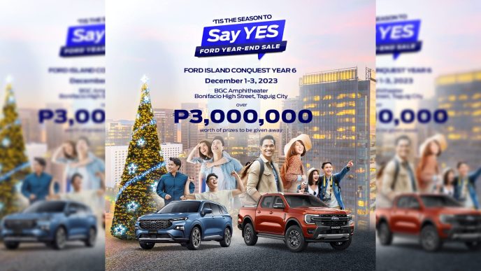 Ford Philippines is holding its last Ford Island Conquest (FIC) test drive event this year at the Bonifacio Global City Amphitheater in Taguig City on December 1-3, 2023, with huge cash discounts and live musical performances from the country’s top bands and artists headlining the last FIC for 2023.