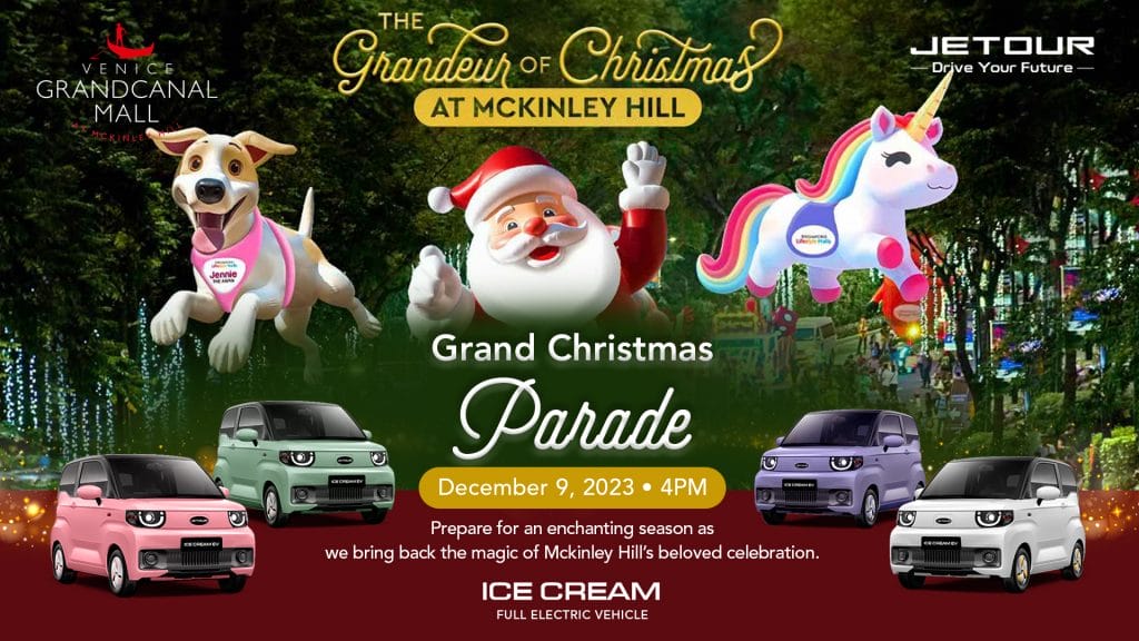 The tie-up will kick off at the McKinley Hill Grand Christmas Parade on December 8, 2023, with four JETOUR Ice Cream EVs highlighting eco-friendly mobility during the festive celebration and experience the showcase of the JETOUR Dashing at the entrance of Venice Piazza Mall until December 10, 2023.