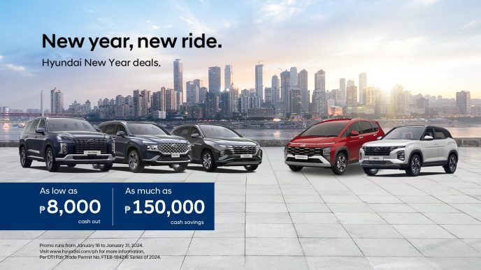 Hyundai Motor Philippines Inc. (HMPH) adds new deals to its smart payment plans so that customers can begin and fill 2024 with memorable trips onboard their dream Hyundai. From the Stargazer to the Santa Fe, these are made possible through Hyundai Finance partners, BDO, BPI, and, East West. The following can be availed* nationwide until January 31: