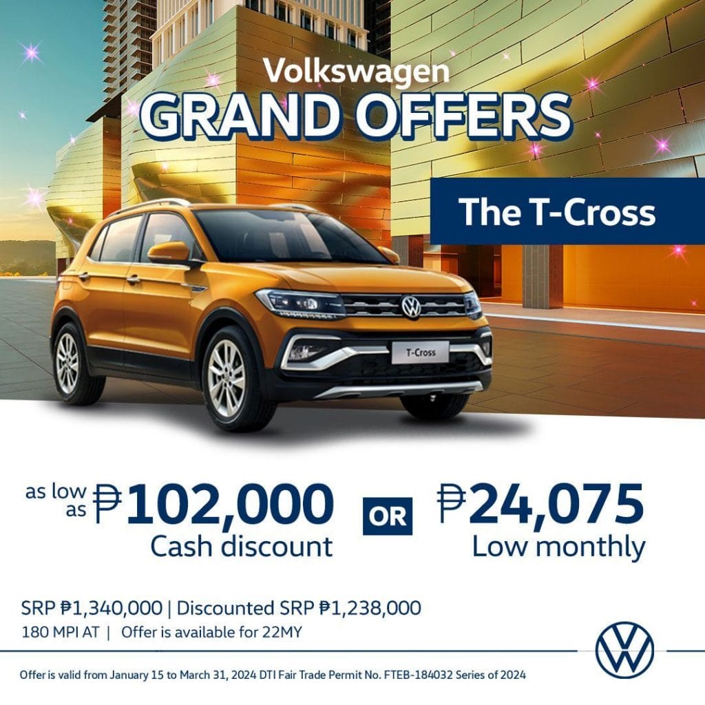 “We continually find ways to make our Volkswagen lineup more attainable,” says Volkswagen Philippines Chief Operating Officer Josh Altarejos. “Volkswagen’s Grand Offers lets our customers choose the right vehicle based on their needs and budgets. Our lineup benefits from the signature German engineering and tuning embedded in Volkswagen’s global offerings. Making them accessible to more Filipinos is key to letting them enjoy the satisfaction of driving a solidly built and designed vehicle for their everyday needs,” adds Altarejos.