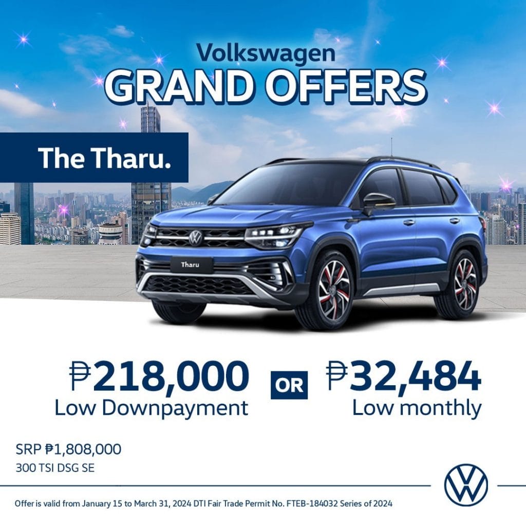For the newly launched Volkswagen Tharu, the SE variant is now available with a low-down payment of only PHP 218,000. Customers may opt for a low monthly outlay of PHP 32,484 for the newest global crossover in the German brand’s Philippine lineup. Similar payment options are available for the Volkswagen Tharu SEL, too.
