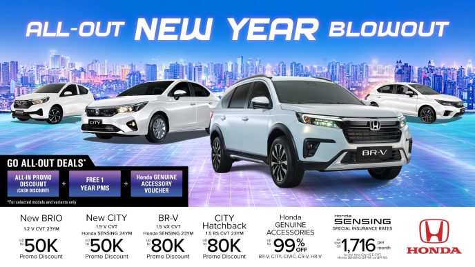 For more information on Honda’s latest promo offers, head on to https://hondaphil.com/promos/all-out-new-year-blowout. Learn more about your favorite Honda vehicles and advanced technologies, the Honda SENSING and Honda CONNECT by visiting HCPI’s website www.hondaphil.com or any of the 37 authorized Honda Cars Dealerships near you.