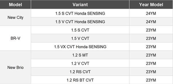 Customers interested in purchasing the Honda BR-V, New Brio, New City sedan, or City Hatchback this 2024 are entitled to at least one (1) of the available packages under the All-Out New Year Blowout deals. Customers will also get a free one-year Periodic Maintenance Service (PMS) and a Honda Genuine Accessory voucher upon the release of their vehicle. This promo can also be used on top of other existing offers.