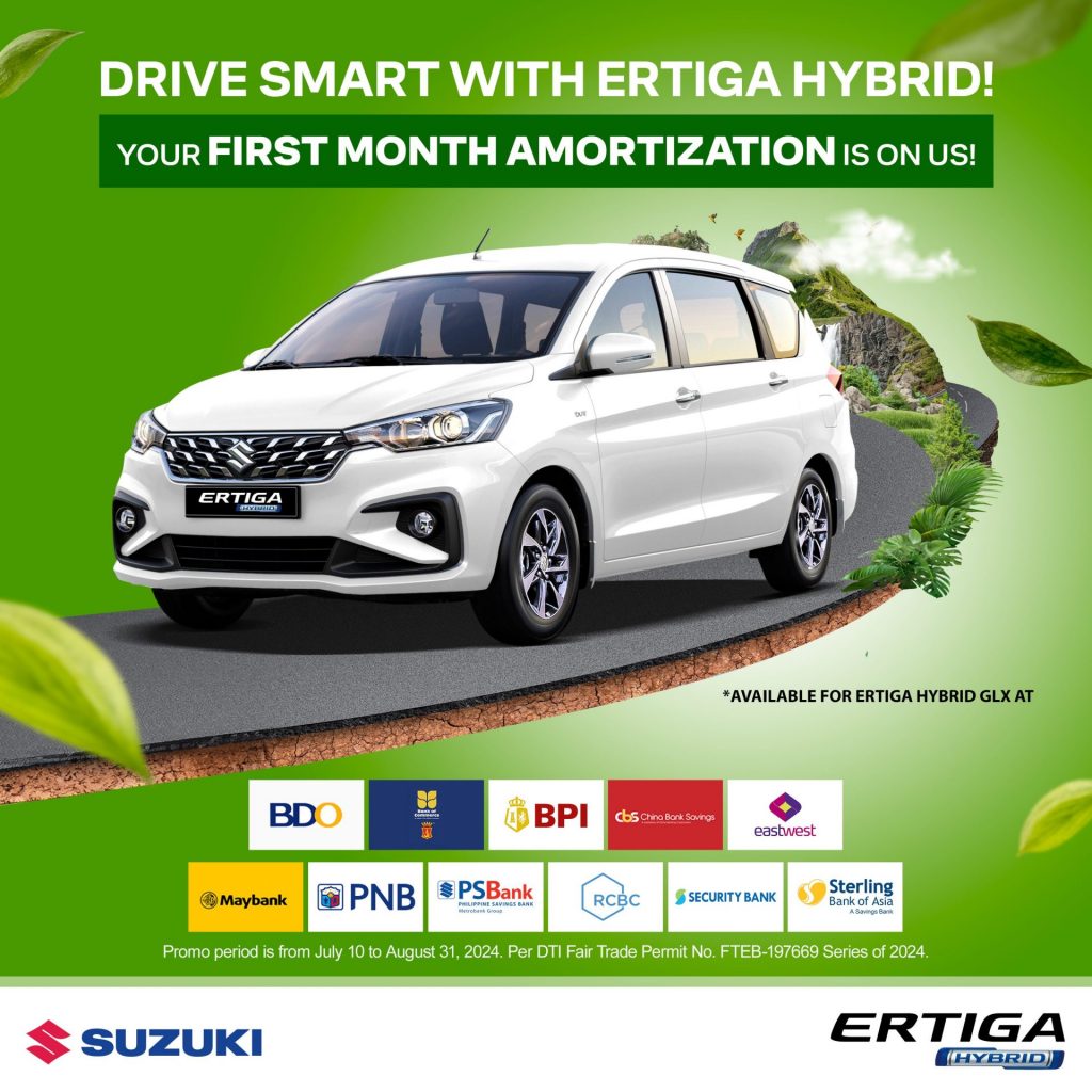 For more details on this promo and the mechanics, visit the Suzuki automobile website at https://auto.suzuki.com.ph/pages/ertiga-hybrid-promo.