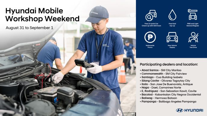 Hyundai Motor Philippines Inc. (HMPH) continues to strengthen its commitment to making aftersales services more accessible through connecting with its customers. On August 31 to September 1, 2024, HMPH, through its dealer partners, will be hosting the Hyundai Mobile Workshop Weekend across the country.