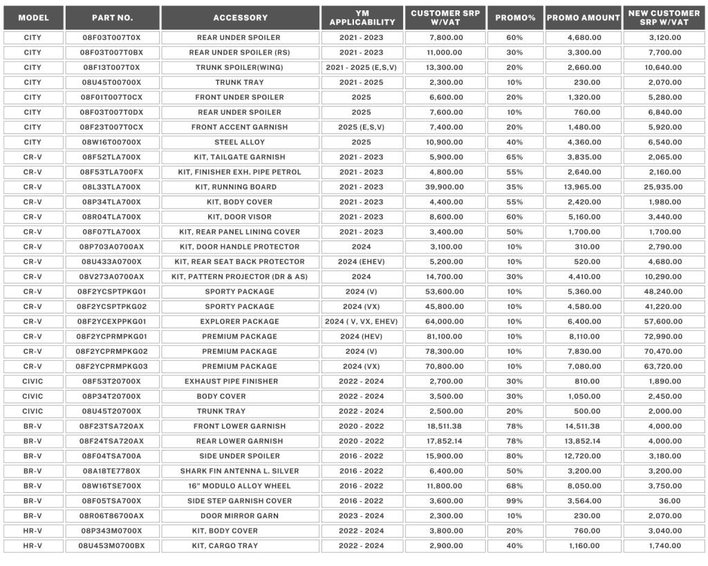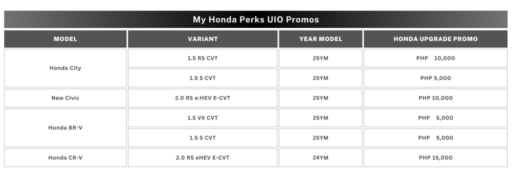 2. All existing Honda car owners who will repurchase any variant included in ‘My Honda Perks’ model coverage is entitled to a promo discount on top of other promotions offered for the month.
