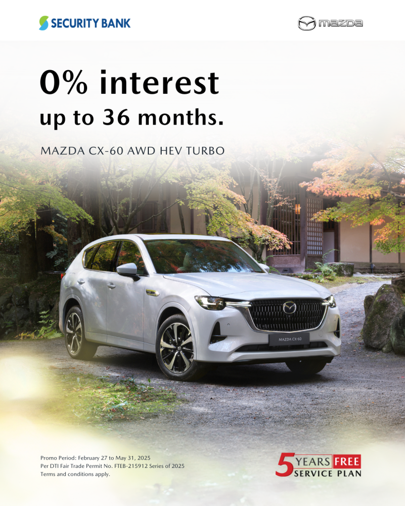 Mazda Philippines, in partnership with Security Bank Corporation, announces a limited-time zero percent interest offer on the Mazda CX-60 and CX-90, both premium HEV products. Security Bank, the recipient of the Best Customer Centric Business Model – Philippines as awarded by the Global Retail Banking Innovation Awards 2024 is offering customers the chance to upgrade to Mazda’s premium line of SUVs with this exclusive offer.