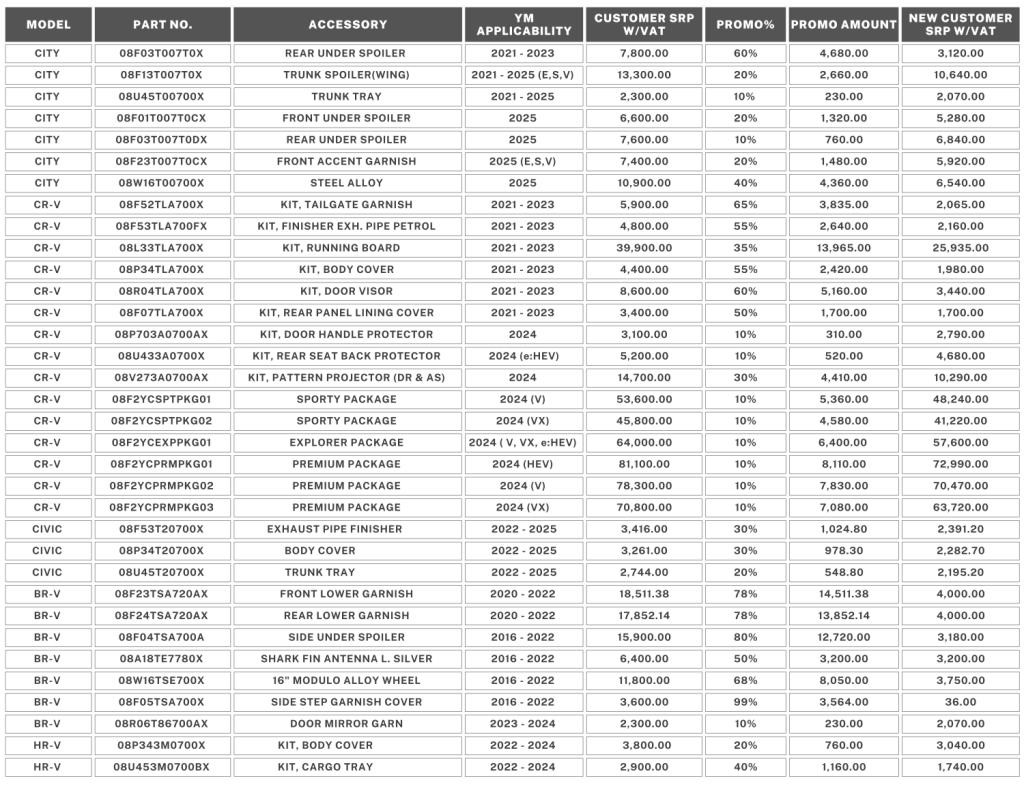 Show every Honda Car some extra love with Honda Genuine Accessories, save as much as 99% off these items for the month.