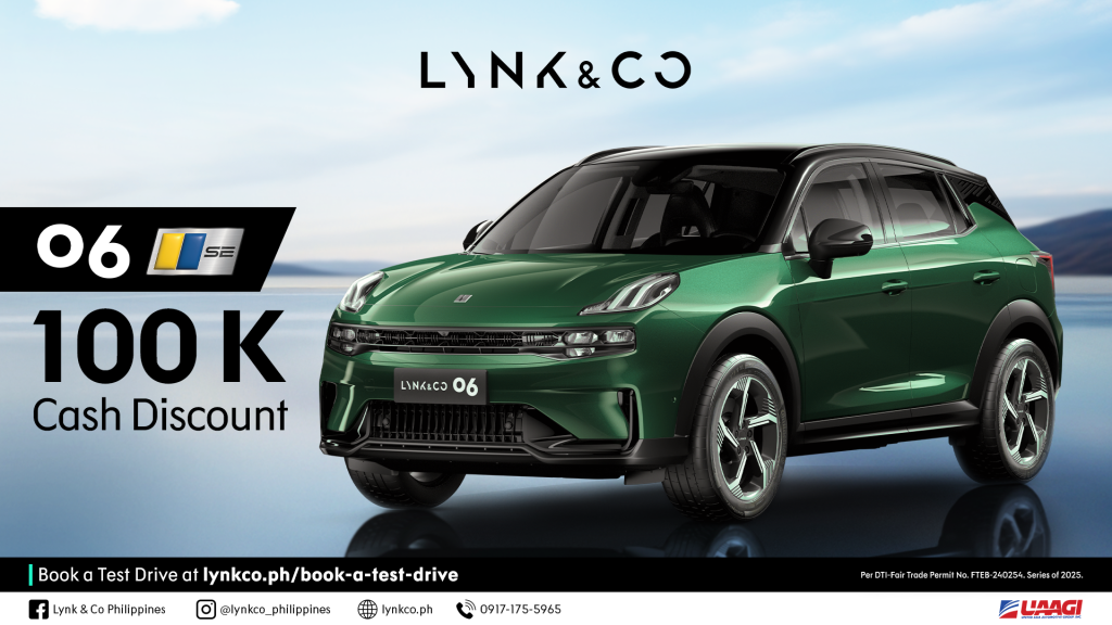Electrify your October at the 13th Philippine Electric Vehicle Summit (PEVS) and head over to the Lynk & Co: Space at the UAAGI On The Move display, from October 23-25, 2025. On Display is the latest member of the Lynk & Co Philippines family: the stylish, efficient, electrified 08 EM-P. This stunning SUV features Lynk & Co’s new “Next Day” design language, has an impressive 1,400Km hybrid range, and has received the highest 5-Star Safety Rating from Euro NCAP. Catch it at the 13th PEVS, and secure event-exclusive deals on the latest, electric ride from Lynk & Co Philippines.