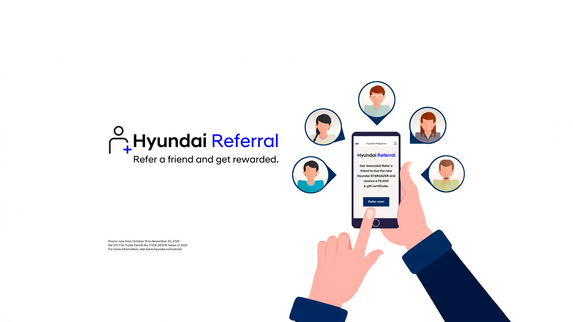 For the full mechanics and details on how to join, visit https://www.hyundai.com/ph/en/build-a-car/promotion/hyundai-referral-program.