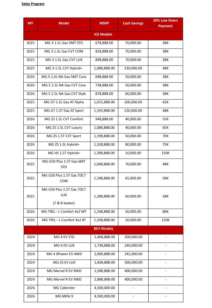 For added flexibility, MG’s 20% low down payment programs are available across its ICE and Hybrid range, while select models such as the MG 3 and MG 5 can be driven home with initial cash outlays starting as low as ₱38,000, making ownership even more attainable.