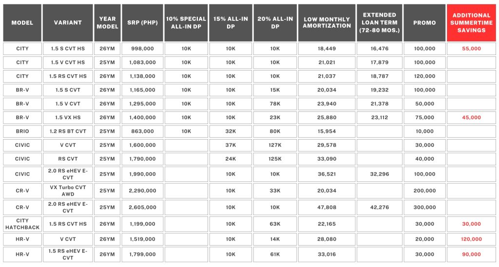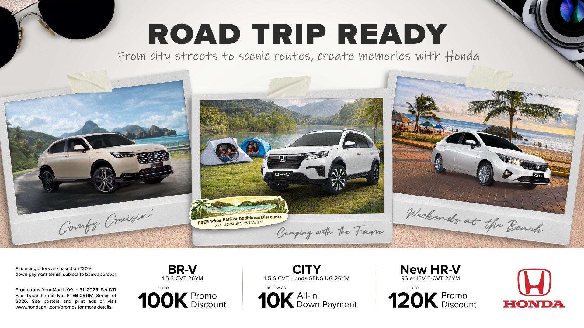 Honda Cars Philippines, Inc. (HCPI) is providing customers with special offers to prepare for the road trip season. Starting this month, customers can enjoy savings on the following models: