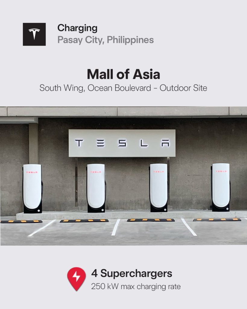 The latest installation includes 4 V4 Superchargers now operational in Pasay at the SM Mall of Asia, located in the South Wing along Ocean Boulevard, which will be accessible 24/7. These Superchargers can deliver a peak charging efficiency of 250 kW, allowing Tesla vehicles to gain an impressive 120 kilometers of range in just five minutes of charging.