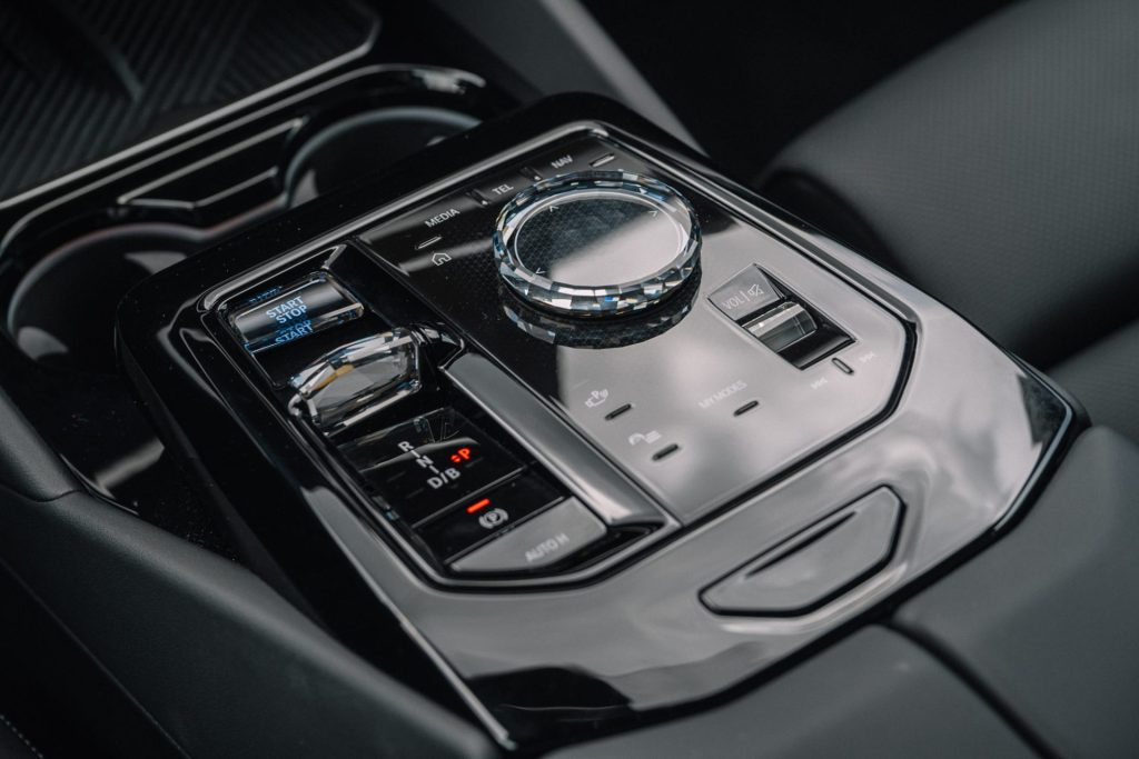 Amidst the sea of black plastic trimmings (in soft touch, glossy, and satin finishes) is a long strip of crystal-like material called the Interaction Bar that adds visual flair to the cabin with multi-color ambient lighting. It’s home to a few important buttons such as the door locks, hazard lights, and even airflow control, which feels odd to use at first as they’re touch-sensitive but require a firm press.