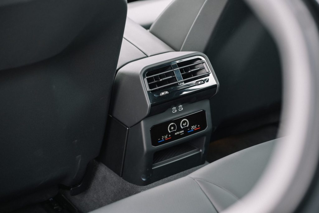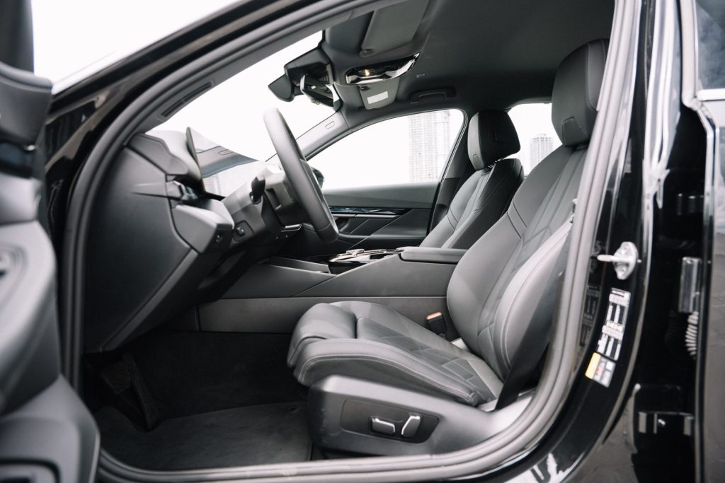 There is black Veganza vegan leather upholstery, and the front seats are very supportive, with power adjustments and memory functions. Visibility as a driver is excellent, and rear passengers have a lot of head, leg, and elbow room, thanks to the 2,995mm wheelbase.